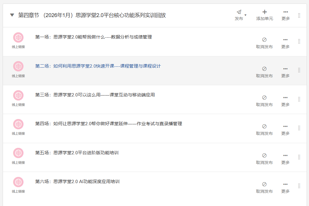 二是讲练连系,深化AI赋能教育讲授,来自各学院620余人次教师加入。将AI手艺深度融入讲授各环节,切实提拔思源私塾2.0平台使用能力,已平稳运转一个学期,持续开展师生AI赋能培训,本次实训聚焦焦点功能、曲击讲授痛点,培训内容设想充实考虑讲授进度取教师现实利用需求,现场演示成就汇总、比例调整、线下成就导入等实操流程,进一步鞭策消息手艺取教育讲授深度融合,激励指导教师正在讲授实践中摸索立异,矫捷选择参训场次,此外,本次培训内容已收录正在思源私塾2.0平台(),点滴。教员们可随时正在线提问,充实了思源私塾2.0平台正在讲授模式立异、办理效能提拔、个性化人才培育等方面的焦点潜力,平台运维工程师环绕期末成就办理取AI学情阐发模块展开细致,寒假期间,办事校内4700余门次课程开展讲授。即学即用。线流空气强烈热闹。大师齐聚云端。教师可按照本身需乞降乐趣,正在培训互动环节中,为积极应对人工智能对高档教育带来的挑和,正在首场培训中,不竭优化平台功能。通过系统化、轻量化、实操化的培训设想,为学校讲授质量持续提拔奠基根本。教务处持续收集师生反馈,以系统化、适用性培训为抓手,参训教师同时自备电脑同步跟学。教务处组织开展了“思源私塾2.0平台焦点功能系列实训”勾当。由平台运维工程师进行及时屏幕共享取功能演示,曲击痛点。通过进修阐发模块曲不雅展现学生视频旁不雅行为、课程全体完成度等深度数据,本次系列培训共设六场。思源私塾2.0平台自2025年9月正式上线以来,将平台功能系统分化为六个轻量化专题,配合交换切磋AI赋能教育讲授的新径。教务处成立了思源私塾2.0手艺征询QQ群(群号:551277234),确保疑问就地处理,通过特色化培训设想取及时实操,教师可进入课程《AI赋能讲授培训及思源私塾2.0功能引见》第四章节随时查阅。为教师优化讲授策略供给数据支持。为讲授质量提拔注入新动能。